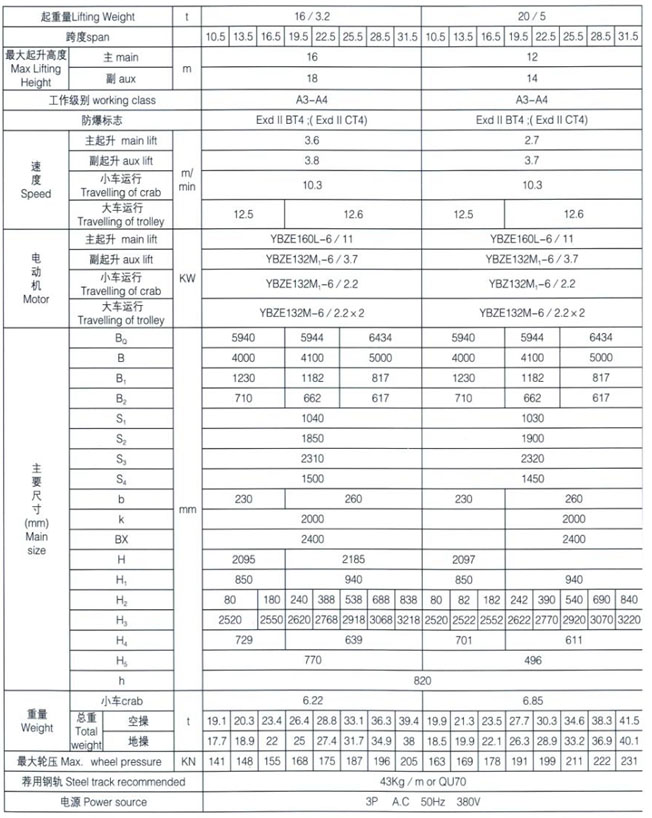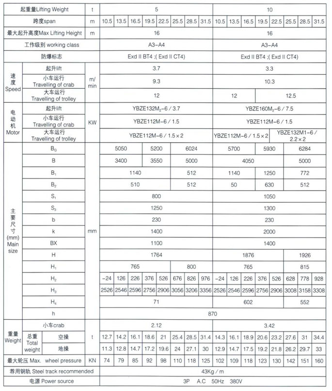 QB型5~50/10t防爆橋式起重機